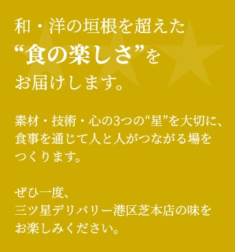 | 【店舗名】 | 三ツ星デリバリー 港区芝本店 |